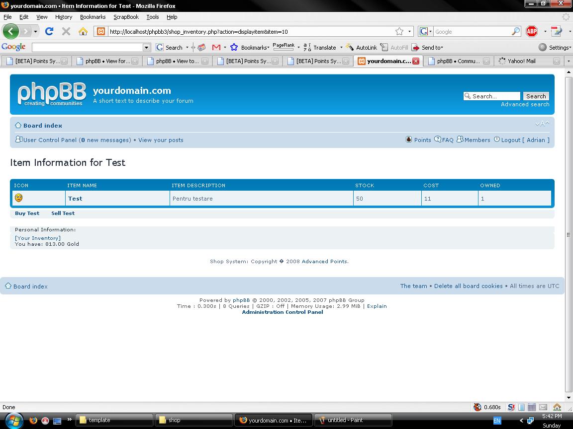 Ziet er iid puik uit :D Wil wel een testversie hebben eventueel. Vroeger ook een shopmod gehad in phpbb2.0.0. dus ik heb dan een goede vergelijking