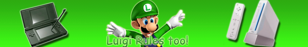 De oude banner,Andere achtergrondkleur,mario word luigi,en de tekst: Luigi Rules Too!